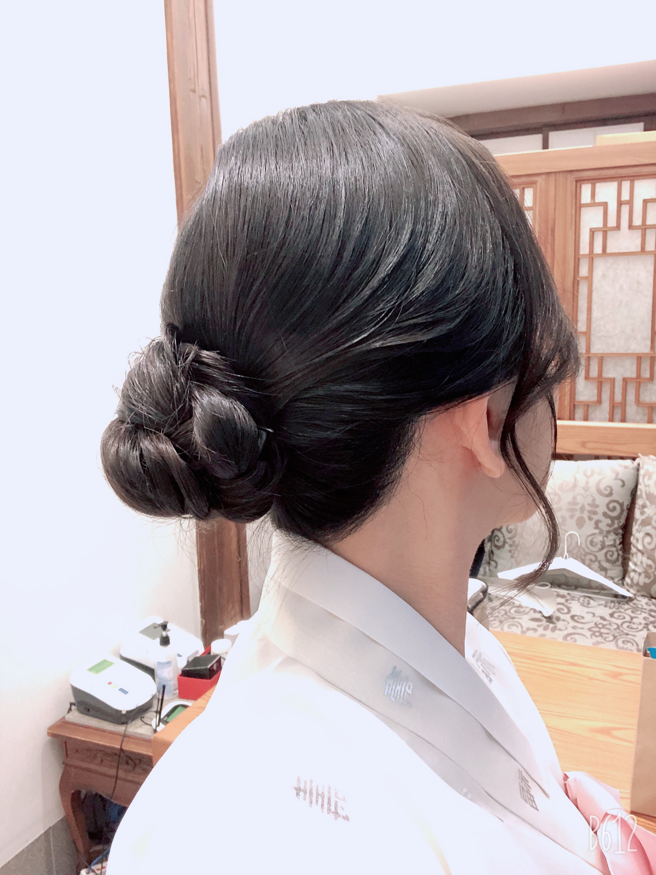 머리스타일도 업스타일을 하였는데, 머리장식 핀 없이도 예쁘게 보일 수 있게 모양을 잡아주셔서 한복에도 평상복에도 다 잘 어울렸습니다!
