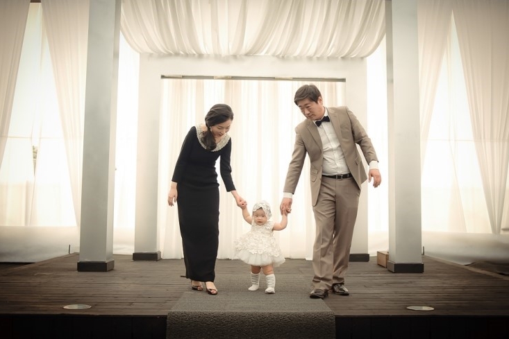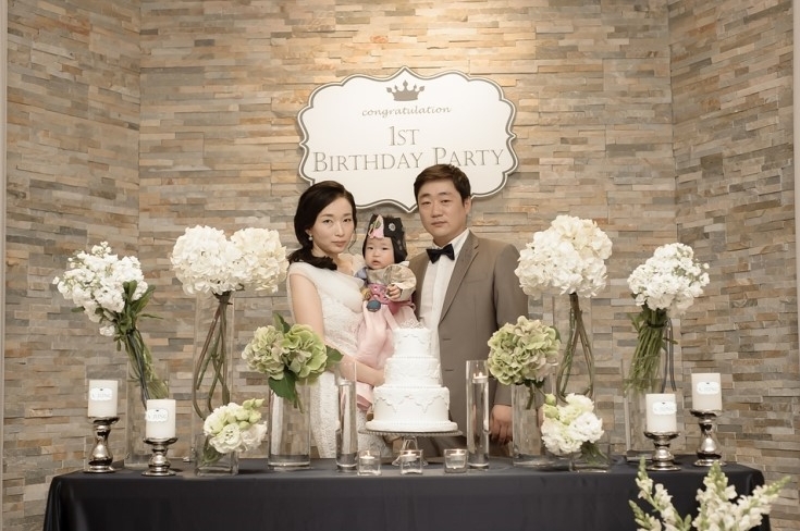 아기를 데리고 샵에 가서 헤어와 메이크업 거의 두시간을 진행하는 건 무리일거 같아서 일찌감치 출장서비스를 알아봤다. 지*메이크업, 헤* 하우스, 쌩끄드*떼,주니* 에서 많이 하시는 거 같았다. 그런데 일산지역은 출장비가 발생하거나 금액이 차이가 좀 나게 비싸서 다른 곳은 다 바이~~하고 주니엠으로 초이스했다. 주니엠으로 한 또 다른 이유는 홈페이지에 올라온 후기도 최신것들이 많아서 참고사항이 됐었고 후기사진들이 내가 원하는 스타일들이 많아서였고 일산이 출장비가 없어서였다. 물론 늙은 엄마라 동안으로 보이는게 최고였지만 올림업헤어는 하고싶지 않았다. 그건 일상생활에서 내가 할 수도 있었고 또 현란하게 땋아서 신부헤어하는 것도 오바스러웠다. 물론 얼굴이 되면야 뭔들해도 안 이쁠까만은~~ ㅎㅎ 행사 이틀전 샵에서 확인전화 주셔서 예약사항 다시 알려주시고 준비사항도 꼼꼼하게 체크해 주시고 담당 실장님 전화번호도 문자로 보내주셨다. 당일날 예약시간보다 일찍 오셔서 기다려 주시고 메이크업과 헤어 진행하는 동안 조용한 음악도 틀어주시고 진행 동안에도 계속 얘기하면서 하니까 시간 가는 줄도 모르겠고 맘이 편했다.. 두분다 너무 상냥하시고 우리 아정이도 어찌나 이뻐해 주시던지... 내 컴플렉스나 피부톤, 요즘 트렌드 등을 감안해서 상담해 주시고 헤어 실장님은 요즘에 올림업 스타일보다 자연스러우면서도 좀더 우아하게 연출해 주고 싶으시다며 샘플들도 많이 보여주셔서 같이 상의하며 골랐고 중간중간 요청하는 사항에도 내 요청이 좀 과할거 같으면 솔직히 말씀해 주셔서 머리스탈 칭찬 많이 들었다.솔직히 거의 돌잔치 맘들 헤어 스타일이 올림 업 아니면 신부헤어라서 내 스타일이 신선한 듯 했다.. 메이크업 역시 립컬러를 과하게 쓰지 않고 최대한 잡티만 가리는 정도로 했지만 정말 12년만의 메이크업이라 나나 남편 역시 처음엔 나같지 않다며 어색했지만 손님들은 나 맞냐며 이쁘다고 해 주셨다. 언니 동생들이 파티 뒷풀이 해야지 그냥 들어가면 너무 아깝다고 남편을 떠봤으나 남편은 들은 척도 하지 않았다~~ ㅠ ㅠ. 아정이 덕분에 내가 아주 기분 제대로 낸 거 같았다.