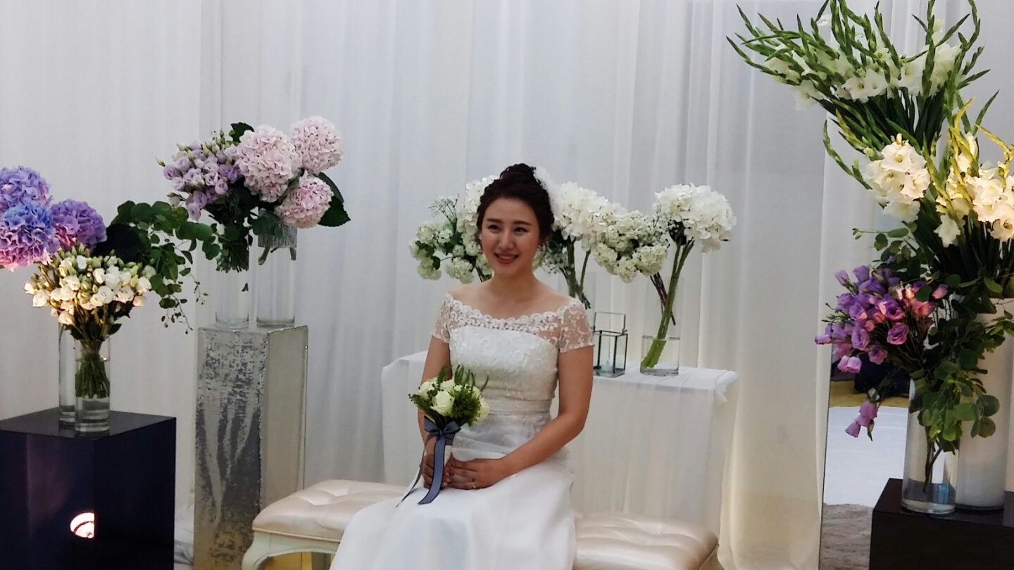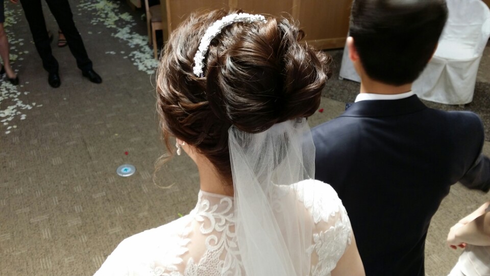 신부는 당일날 헤어가 중요하다고 해서 헤어가 보이는 사진까지 공개합니다. 그날 제 메이크업은 시간이 지날수록 은은하게 밝아지고 환해져서 너무 신기했어요~