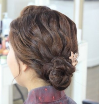 임산부라서 한복 대신 네이비 원피스를 입었고, 어깨 약간 넘는 길이라서 풀고 드라이하기엔 지저분해서~ 머리숱도 없고.. 올림머리인데, 아래쪽으로 올리는 머리로 해달라고 요청드렸어여~ 아래같은 스타일류 사진으로 막 보여드렸어요~~