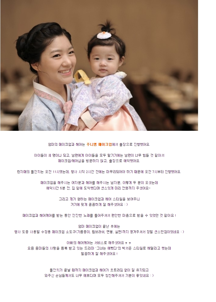 주니엠 메이크업에서 출장메이크업 받아 돌잔치 잘 치루고