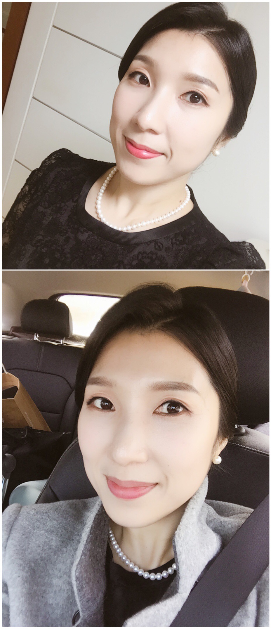 위에 사진은 헤어&메이크업 직후의 사진과 행사 후 집에 올 때 차안에서의 사진입니다.